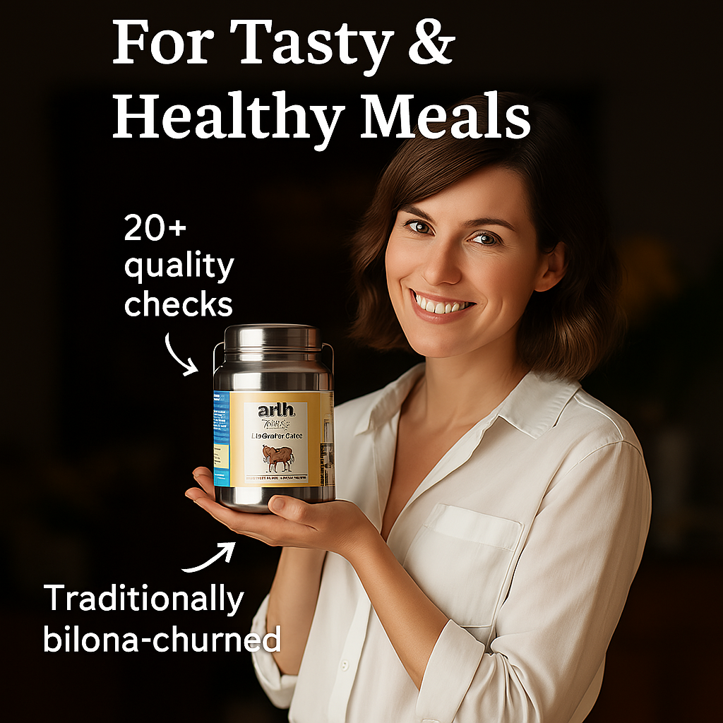 Cultured ghee from the milk of A2 Desi Gir cows has anti-bacterial, antifungal and antioxidant properties. Hand-churned A2 Bilona Ghee aids digestion and builds gut health by contributing to the Gut microbiome.